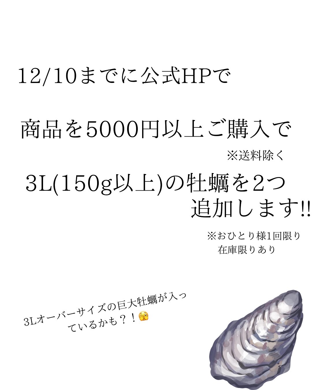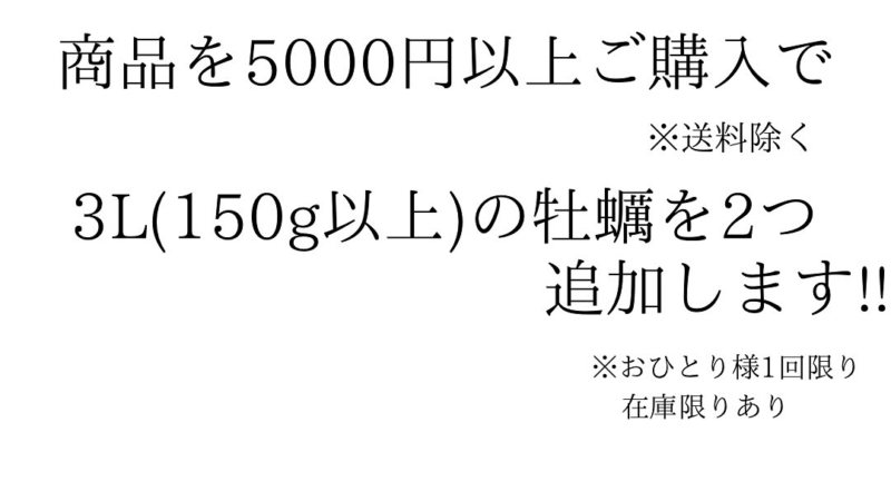 5,000円以上ご購入いただいたお客様に、特大牡蠣をお付けしています!
